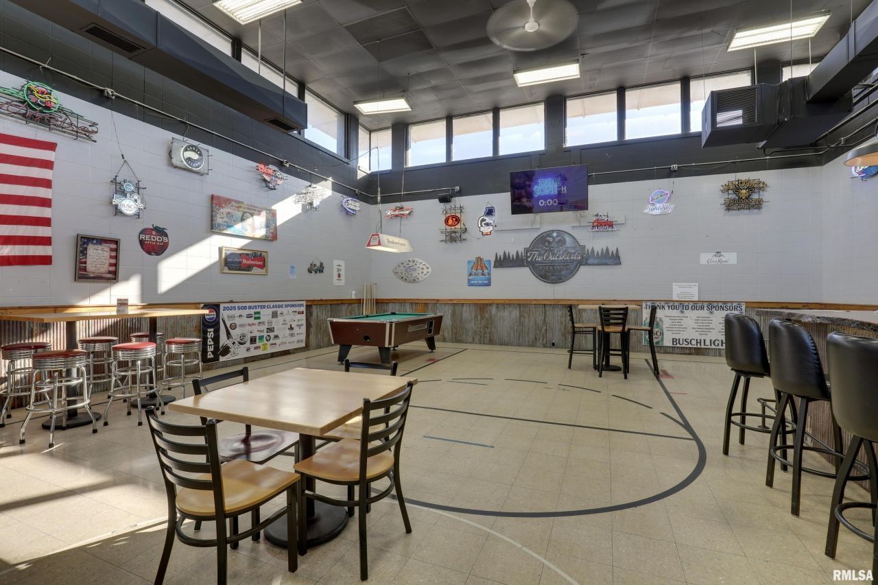 Endless possibilities with this well-established bar and event venue situated on 5 acres in a peaceful rural setting! The impressive 12,320 sq ft building was formerly a school and now offers a unique blend of character and functionality. The bar area features stunning 19-foot ceilings and a gaming room, while the large event space in the back is perfect for hosting weddings, receptions, parties, and community gatherings. Geo-thermal heating and cooling provide energy efficiency year-round. Great opportunity to continue its legacy or bring your own vision to life!