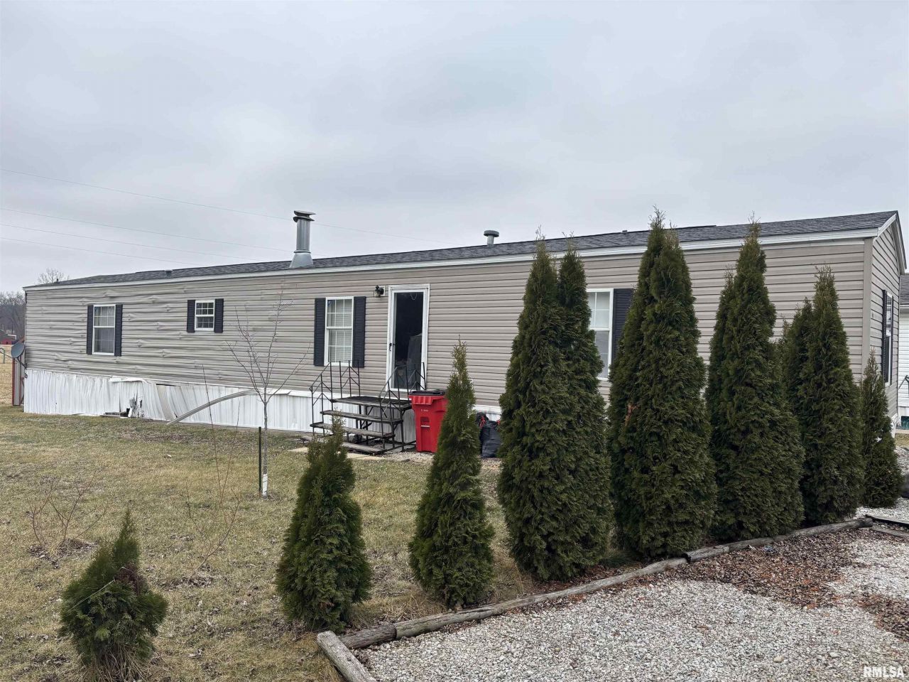 Handyman special and amazing opportunity to purchase this 3 bedroom/2 bath 2002 Spirit home at a great price. Roof was replaced with a complete tear off in 2025 and the Schrock outbuilding (around ten years old) behind the home does convey with this sale. Great parking and one of the larger lots in the park. The home did have a toilet tank crack which caused floor damage and warping to the plywood in the second bathroom and adjoining rooms. This is a great opportunity to increase value through sweat equity. Buyers must be approved by Halfpap park management.